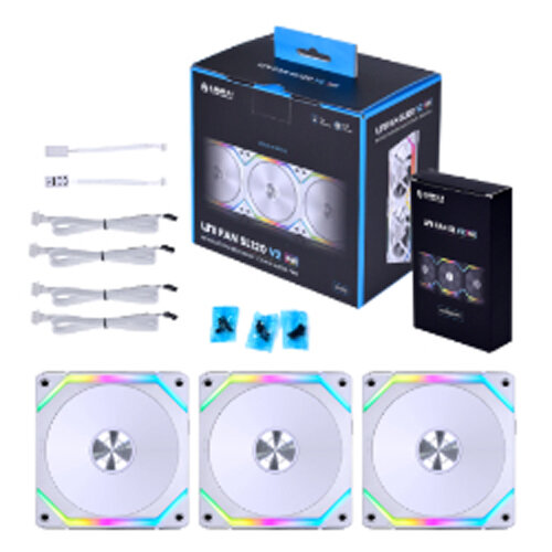 Lian Li UNI FAN SL120 V2 RGB 120mm Triple Pack Cooling Fan – White | UF-SL120V2-3W